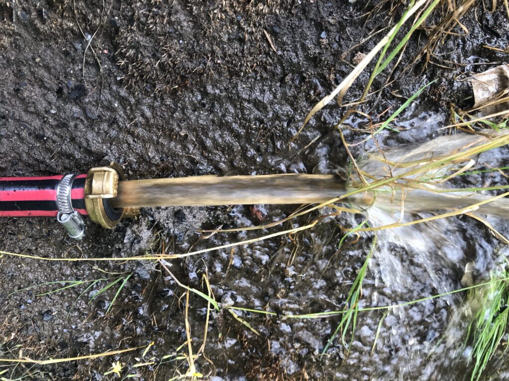 Jääpossutus, runkovesiputki: 500m pitkä haara, jossa ongelmia saostumien ja veden värin kanssa. Jääpossutus poisti runsaasti saostumia.